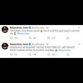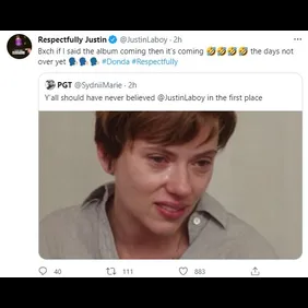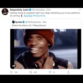 Laboy returned to Twitter to offer up a few updates while keeping the hype alive for a despondent fanbase. A Twitter user said that people shouldn't have believed Laboy in the first place. "Bxch if I said the album coming then it’s coming [sideways crying laughing emojis] the days not over yet [shout emojis] #Donda #Respectfully."