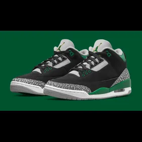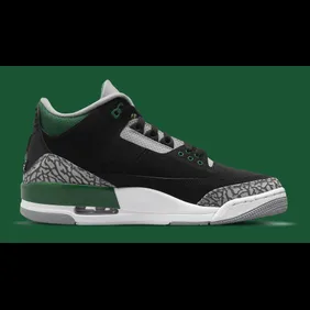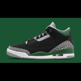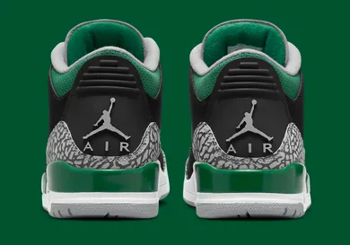 Among these models is the Air Jordan 3 "Pine Green," which can be found below. The shoe has a mostly black upper, with some grey elephant print throughout. The black and grey work well together, all while green hits are added to the Jumpman logo, the midsole, and even the insole. It isn't the flashiest model although it certainly looks great when you add the green highlights.