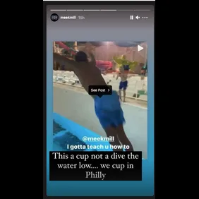 Meek responded to the belly-flop on Instagram Stories, explaining, "This a cup not a dive the water low... we cup in Philly."