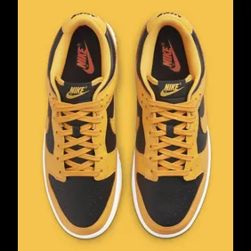 Inspired by the University of Iowa Hawkeyes' team colors, details of the Nike Dunk Low include a black based leather, surrounded by often called "Goldenrod"-yellow overlays around the shoe, with same colored yellow laces. Additionally, the shoe is supported by a yellow outsole and a white midsole.
