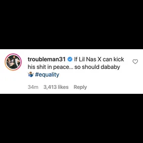 T.I. defended the rant, commenting, "If Lil Nas X can kick his shit in peace... so should dababy [shrugging emoji] #equality."