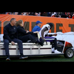 The injury was sustained on the first play of the second quarter while Jackson was rolling out to his right. Browns linebacker Jeremiah Owusu-Koramoah dove at Jackson's leg while trying to catch up to him for a sack. Jackson was left on the ground holding his ankle.