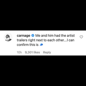 "Me and him had the artist trailers right next to each other," said DJ Carnage, commenting on the post. "I can confirm this is [cap.]"