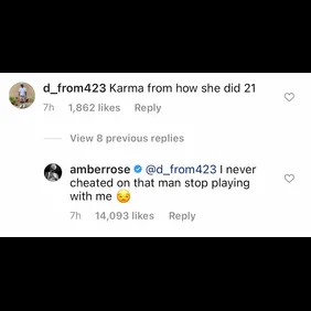 In the comments, somebody suggested that this was karma for what Amber did to 21 Savage, but she says she was never disloyal with the rapper.