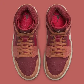 In the images below, you can see the new "Africa" colorway, which has some pretty eclectic colors throughout. The overlays all have some unique textures, meanwhile, there is a floral palette here that includes different shades of purple and even some beige for good measure. It all comes together extremely nicely, and there is no doubt that this is one of the more unique Air Jordan 1 Mid colorways that we have seen in quite some time.