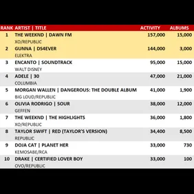 While this places Gunna as the runner-up for next week's #1 position on the Billboard 200, the release of a deluxe edition could end up pushing the rapper into the lead over the weekend. As it stands, The Weeknd is likely to debut at #1 with Dawn FM, moving an estimated 157,000 copies.