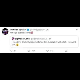 Later, Moneybagg seemed to accept the challenge by retweeting Choppa's message with an additional caption that only included a handshake emoji. It has only been a week since that agreement, and a fan wanted to know if Moneybagg was making good on his word. "I wonder if @MoneyBaggYo started the chlorophyll yet..what’s the word fam."