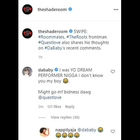 After The Shade Room reposted the update, DaBaby jumped in the comments. "I was YO DREAM PERFORMER N*GGA I don’t know you my boy [crying laughing enoji]," he wrote. "Might go mf bidness dawg @questlove." Check it out below.