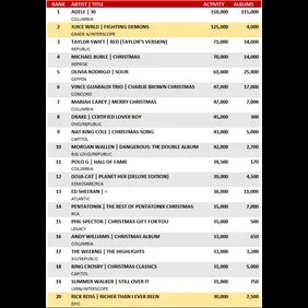 Taylor Swift, Michael Buble, and Olivia Rodrigo will round out the Top 5.