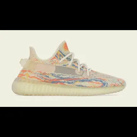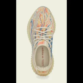 The all-new version of the famous Yeezy Boost 350 V2 features a unique, Primeknit multicolored pattern, that aesthetically deviates from the standard Boost 350 V2 design. Specifics on the "MX Oat" include a primary, yellow-tan colorway making up the shoe's base color, with a translucent stripe running down the side of the new Yeezy Boost. Other details include the new Primeknit pattern, which features multicolored streaks of orange, blue, and yellow that run throughout the shoe, different from prior Yeezy Boost 350 V2 styles. Additionally, the "MX Oat" sits atop the standard Boost cushioning on its midsole, with lightly-toned tan laces that bring the colorway together.
