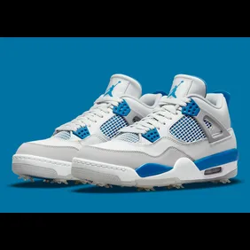 Fans of the Air Jordan 4 have been blessed over the years with some pretty incredible models. When the shoe was first introduced back in 1989, it came out in four colorways including "Fire Red," "Bred," "White Cement," and "Military Blue." While most sneakerheads have various favorites, the "Military Blue" model has always remained a consistent choice for fans. Now, it would appear as though golfers will be getting this model as well thanks to the Air Jordan 4 Golf "Military Golf" that is set to release soon.