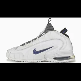 Details of the "Home" Nike Air Max Penny 1 include a perdominately white base with same colored laces, atop a black and grey pinstripe tongue, influenced by the retro Orlando Magic uniform. Additional details, such as the standard air max unit on the shoe's sole, along with royal blue Nike Swooshes across the side, toe, tongue, and bottom, help makeup the shoe's design. The Royal blue color can also be found on the logo at the sneaker's heel, as well as on the mesh inside the shoe.