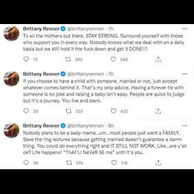 "Nobody plans to be a baby mama…um…most people just want a FAMILY," she tweeted. "Save the ring lectures because getting married doesn’t guarantee a damn thing. You could do everything right and IT STILL NOT WORK. Like…are y’all ok? Life happens! 'ThAt’Ll NeVeR bE me' until it’s you. If you choose to have a child with someone, married or not, just accept whatever comes behind it. That’s my only advice. Having a forever tie with someone is no joke and raising a baby isn’t easy."