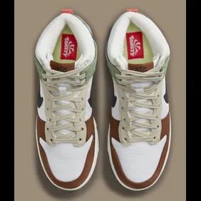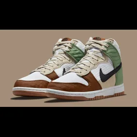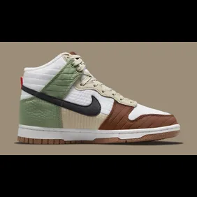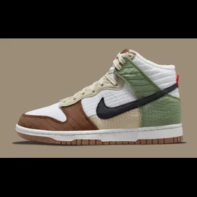 The latest colorway of the Nike Dunk High Next Nature is this "Summit White" variation which can be found below. This sneaker has a white toe box with some white material that goes up the sides and to the cuff. From there, we have some beige on the lower half, all while the front of the shoe has green overlays and the front has brown. A black Nike swoosh is found on the side to bring it all together.