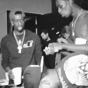 Diddy posts up with Young Chris and Biggie Smalls' old stylist Groovey Lew, looking fresh. He then checks in doped up on painkillers after knee surgery, looking less fresh.