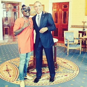 Wale poses with Barack during his recent trip to the White House to appear on an education panel with Michelle Obama.