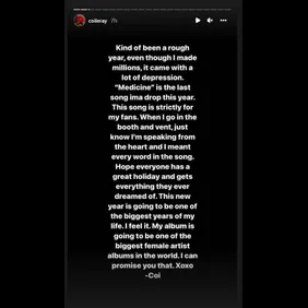 "She added, "This new year is going to be one of the biggest years of my life. I feel it. My album is going to be one of the biggest female artist albums in the world. I can promise you that Xoxo -Coi." We'll have to wait and see if her manifestation comes to pass. Check out Coi Leray's post below.