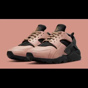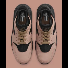 In the images down below, you can see that Nike is staying in line with the original model as we have some rich neutral tones all throughout the upper. The salmon pink on the upper is complemented by the black highlights on the back heel, midsole, and even the tongue. From there, bronze is placed on the Huarache logo found on the tongue. It's a dope offering that brings back some of that 90s flavor.