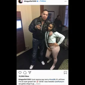 Over three years after he claimed to have slept with Cardi B, King Yella has finally turned to his Instagram page to issue a public apology to the “Bodak Yellow” rapper. He posted a throwback photo of the two hanging out in what appears to be a hotel room with a heartfelt caption.