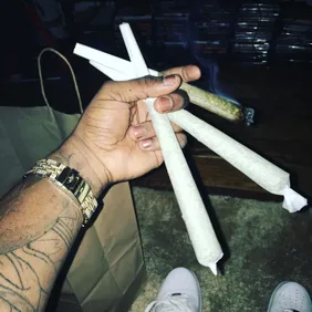 Abel smoking with his boy Wiz. Shoutout Wiz' jacket.
