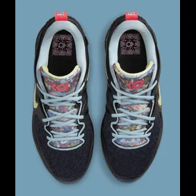 Now, however, it appears as though some official images of the shoe have surfaced online, and they can be found down below. The new iteration of the shoe is quite different than what fans are used to as there is some knit on the upper, all while the sides are reinforced with a black rubber cage that contains the Nike swoosh. This first colorway is going to be blue and black, and as you can see, the tongue will be quite colorful as little illustrations are placed throughout.