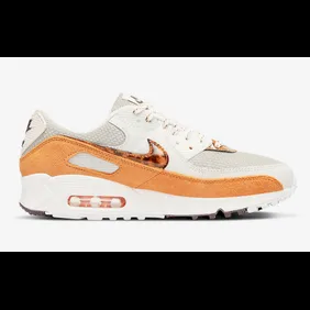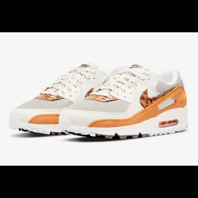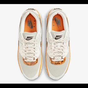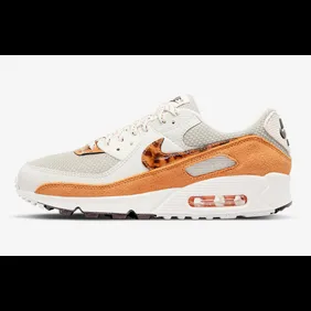This shoe is interesting as it has a grey mesh upper with some white overlays on top. There is also some orange on the sides, which is then complemented by the best part of the shoe, which is the leopard print swooshes. This addition sets the shoe apart from other Air Max 90 models, and while these may not appeal to everyone, they are certainly worth taking a second look at.