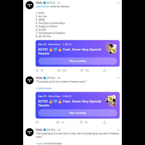 When Jay-Z emerges with commentary on his career and the sphere of music, the world listens. Alicia Keys has been steadily promoting the release of her eighth studio album Keys, and to help bolster the hype, the singer hosted a Twitter Spaces chat. The setup is much like that of Clubhouse except on the micro-blogging app, and during Key's feature, she invited a few friends to join her, including Shawn Carter.