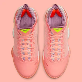 This shoe has a gorgeous pink and peach upper to it, while the tongue and back heel is purple with some flowery graphics to it. This sets up the "Hawaii" motif quite nicely, and with the yellow Nike swoosh on the midsole, there is no doubt that this is a pretty interesting sneaker. Hoopers love something flashy for the court, and these definitely fit that bill to a T.