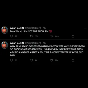 Her dislike of VladTV is well-documented and Asian Doll has once again come forward with a complaint. The rapper has regularly called out the popular interview platform for bringing up her relationship with King Von. Following the Chicago rapper's murder, Asian Doll publicly grieved his loss and shared images, videos, and memories of their romance. This was met with backlash by many, and VladTV has sometimes asked its guests about their thoughts about the couple.