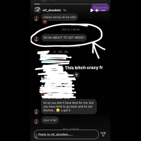 Contrarily, Doodie Lo has recently shared a series of posts to his Instagram story in which he leaks a screenshot of his alleged Instagram DMs with FTN Bae from August, in which she reportedly wrote "SO IM ABOUT TO GET MESSY."