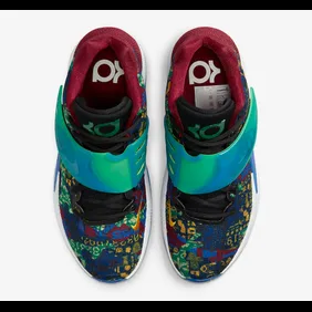 The latest offering to be shown off is this "Ky-D" colorway which can be found below. As you will immediately notice, the upper is made with various unique patterns and colors that are supposed to pay homage to Durant's teammate, Kyrie Irving. From the all-seeing eye on the straps to the references to 7 and 11, there is no denying that this is a shoe that is supposed to be a showcase of all that Kyrie has accomplished throughout his time in the NBA. Now, it is only a matter of time before the Nike Kyrie 8 gets a KD colorway.