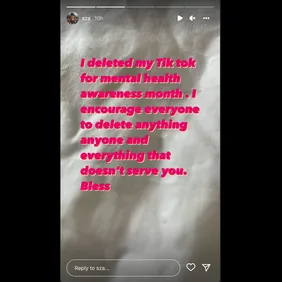 "Ya'll suck the joy and life out of EVERYTHING. Thank God for purpose cause Outside of art it's f*ck y'all . Now run w that," she added. "And please know when I drop anything it's not for y'all . It's to free my *****ing self ." That wasn't all; SZA also updated her Instagram Story where she revealed she was making some changes to her social media accounts in an effort to better take care of her mental health.