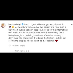 "Lord …. I just will never get away from this… [facepalm emoji][sad emoji] y’all want me to be such a evil person and have such a ugly heart but it’s not gon happen.. no one on this internet has met me in real life ! It’s unfortunate this is something that’s being brought up to bring me down . Cause it’s so nasty. I don’t even like addressing it to bring it attention , but it’s like calling me a rapist, when I didn’t do it . F*ck man [broken heart emoji]"