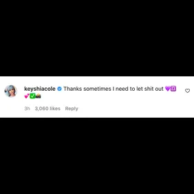 After The Shade Room reshared the post, Cole jumped into the comments to add: "Thanks sometimes I need to let sh*t out."