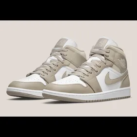 This tan, tone-on-white, colorway concept of the Jordan 1 Mid is expected to garner as much attention as it's similar sneaker predecessors, with details including a white toe-box surrounded by a sleek, tan upper, and a white tongue and mid-panel matched by tan lances and the famous Swoosh in the same color.