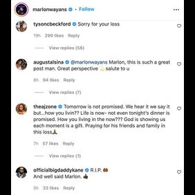 "In this moment i pray for you and your family and all those you’ve healed that can’t call in to your show. I hope you can heal more and reach more in heaven. Rest well. Appreciate you trying to hold on and express masculinity." Check out Wayans's post and a few reactions below.