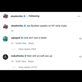 "Man sh*t yo soft ass up," wrote Waka. The mention wasn't lost on Budden who replied, "Or what?" Things seemed to have stopped there, at least publicly.
