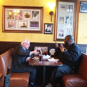 Bernie Sanders dines with Killer Mike in Atlanta... either Bernie is tiny or Mike is enormous.