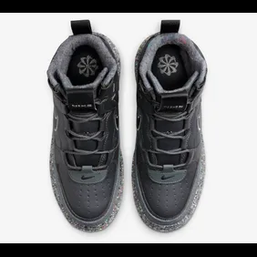 To be more specific, this new model is called the Nike Air Force 1 Boot Crater and it is entirely made with reused material. The inaugural colorway is filled with various tones of charcoal grey, all while the chunky midsole has colorful specks all the way throughout. This is one of those looks that is going to divide people, although if you're planning on becoming an astronaut, these are probably really cool to you.