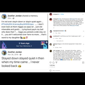Sharing a memory from 2016 on Facebook about "staying down" and "staying quiet," Nitt Da Gritt said, "I'm not ever stayin down or stayin quiet again... #ThisMyShit #JerseyBoyWithStripes ..... I don't even look at them n***as as opps lol .. just old miserable and goofy... Lying bout paying my bail who does that? ... n***a you picked a side stay on it ... you ain't welcomed over here no more ... that's word to my daughter."