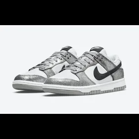 As you can see in the images below, the shoe is quite loud, although the colors are full of pizazz. There is a white mesh upper as the base of the shoe, all while the overlays are a cracked silver leather. There is a black Nike swoosh for good measure, and overall, it is a pretty dope look that is going to excite some of the female sneakerheads who love the Dunk Low in particular.