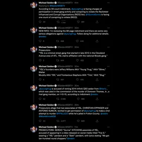 Gunna's involvement is reportedly less serious, although authorities have noted that the rapper has worn pendants, chains, and rapped lyrics about his affiliation with YSL—Young Stoner Life or Young Slime Life. According to prosecutors, YSL is a gang and in a RICO case, if it can be proven that someone is a part of the said gang, they, too, can rack up charges that their associates are responsible for.