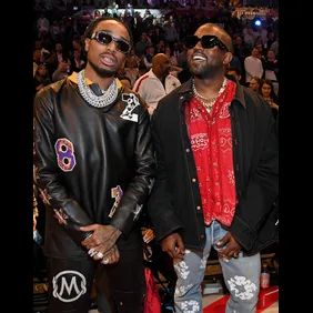Last night, Kanye West linked up with Quavo at the Donda Academy game in Atlanta where they were both seated alongside Justin LaBoy, marking what appears to be an end to their feud. Kanye West walked onto the court with Quavo by his side before greeting LaBoy. Ultimately, Kanye sat between both Quavo and LaBoy, though it's unclear if they ended up having any conversation with one another about the supposed misunderstanding.
