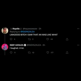 Iggy seemed amused at Carti seemingly suggesting he's footing some bills. "Take care of me? Lmaooooo," she tweeted. "Let’s not get carried away now." A fan replied that they, too, were taken aback by the statement and Iggy added, "I laughed. A lot." Check it out below.