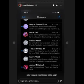 In another post, Theo gave the world a sneak peek into what he texted Ye about the situation, saying, "Just pulled up on this corn ball at nobu told him to apologize on camera asap."