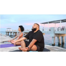 Though Khaled continues to live a decadent lifestyle, gorging himself on exotic fried foods, he seems somewhat serious about his health, routinely posting underboob-laden IG videos of him running on the treadmill. And apparently he's into yoga now.