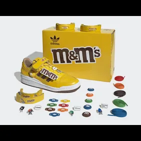 From the yellow and brown aesthetics to the matching box, this shoe screams M&Ms. There are various customizable elements for this shoe, including little interchangeable tabs and straps that have various references to the different colored M&Ms. Overall, this shoe is a candy lover's dream, and we're sure Adidas collectors will be eager to get their hands on them sooner rather than later.