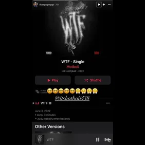 Drake posted a screenshot of himself listening to Hotboii's "WTF" on his Instagram Story, Tuesday, with several emojis praising the rapper's latest single. The track was released on June 3.