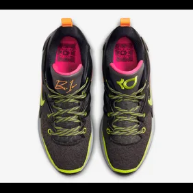 As you can see in the images down below, this sneaker comes through with a black knit base. From there, we have some vibrant yellow, green, and orange highlights that are placed throughout. On the tongue of the right shoe, Boi-1da's signature is found in place of a KD logo, and overall, it helps give the shoe some added personality.
