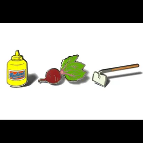 Courtesy of the geniuses over at Pintrill, we now have a three-pin set that syobolizes DJ Mustard's famous catchphrase quite literally. A mustard bottle, a beet, and a garden hoe are the cleverly chosen symbols, but honestly they had us at mustard.